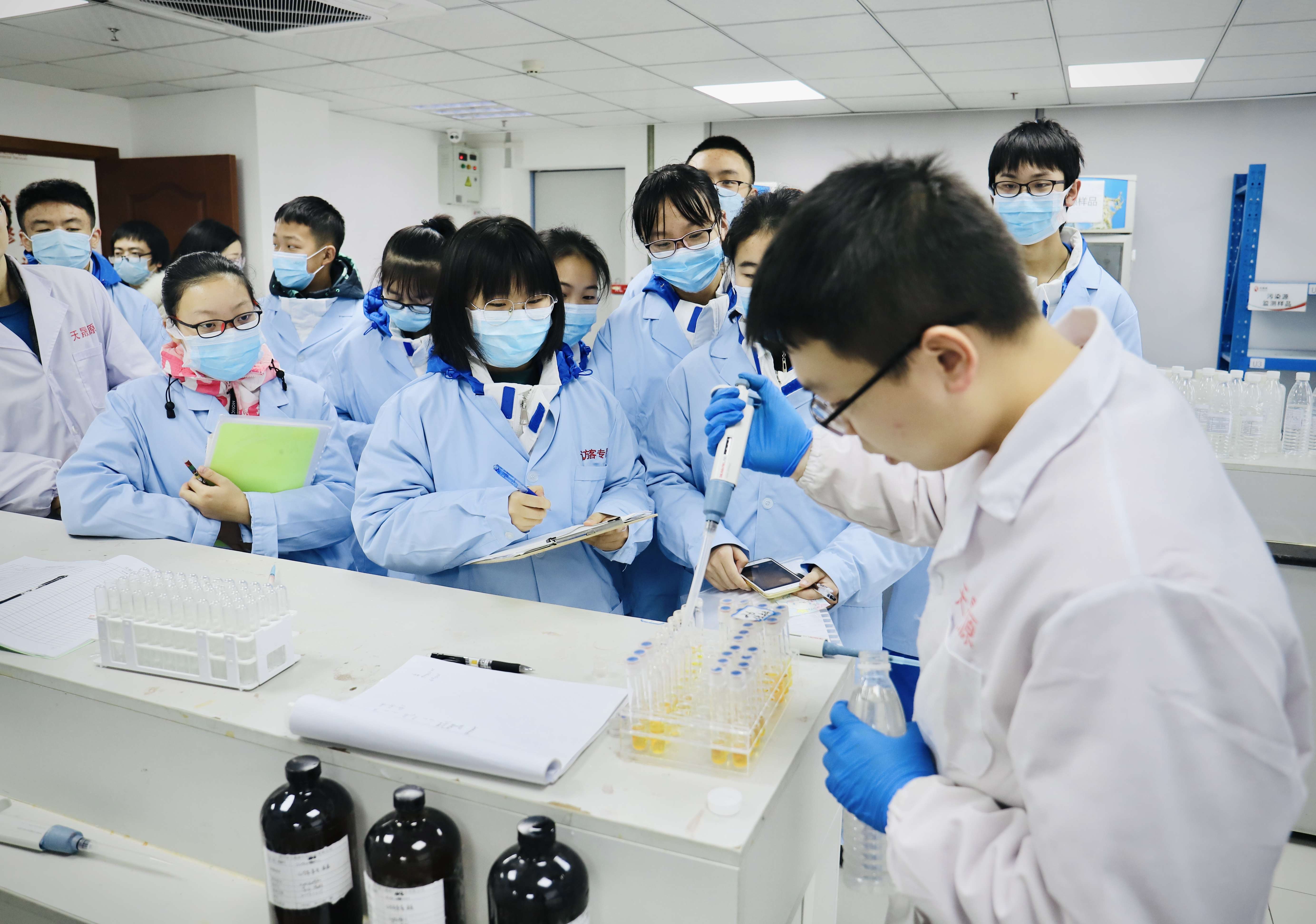 成都英才學(xué)校師生們?cè)谔礻稍喘h(huán)保實(shí)驗(yàn)室工程師張衛(wèi)威的帶領(lǐng)下參觀了實(shí)驗(yàn)室全貌,對(duì)樣品檢測(cè)全處理流程有了直觀的感受。隨后12名同學(xué)分為三組,分別觀看了高錳酸鹽指數(shù)、氨氮、溶解氧三項(xiàng)實(shí)驗(yàn)指標(biāo)的檢測(cè)全流程演示,并在實(shí)驗(yàn)室技術(shù)骨干的指導(dǎo)下現(xiàn)場(chǎng)進(jìn)行了實(shí)操,真切地體驗(yàn)了一瓶水體是如何成為嚴(yán)謹(jǐn)?shù)目茖W(xué)數(shù)據(jù)的過程。