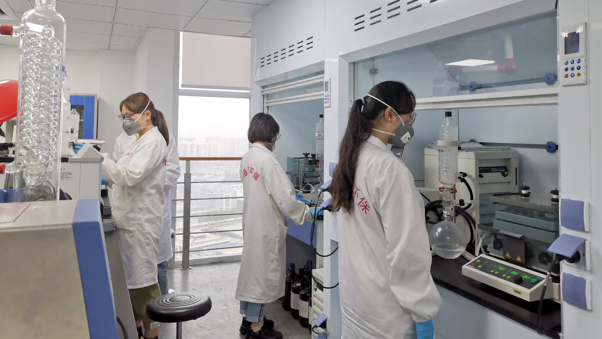 (分析人員操作平行蒸發(fā)和旋轉(zhuǎn)蒸發(fā)儀)