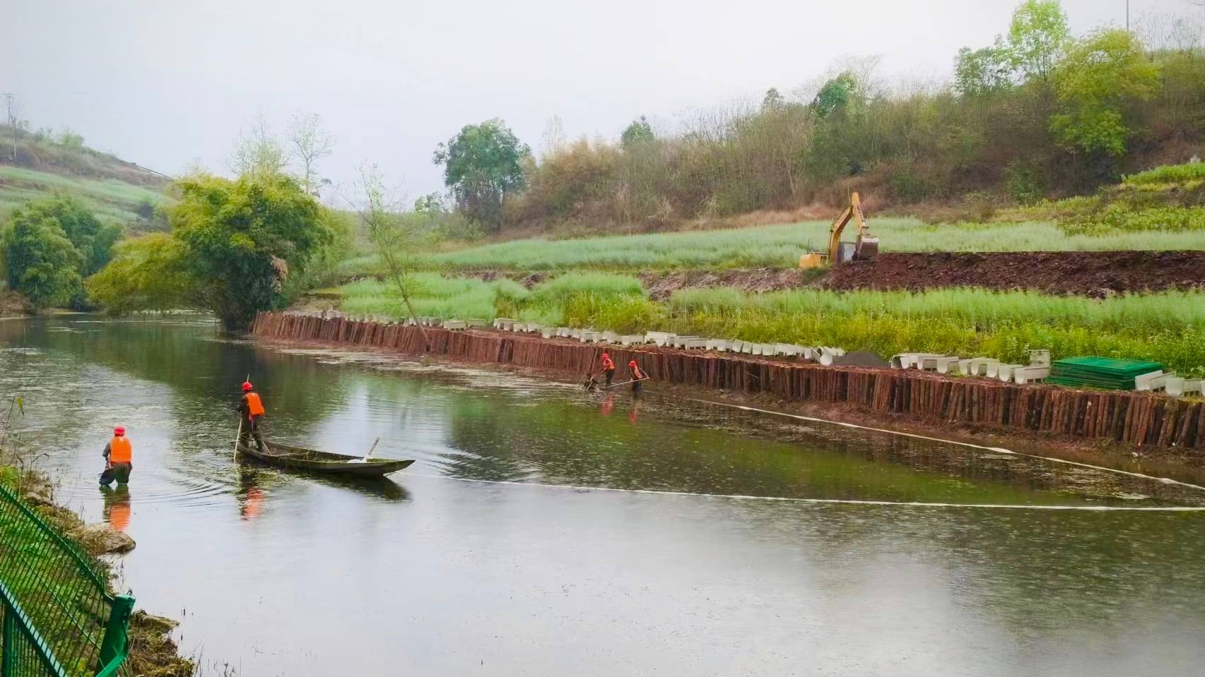 在天晟源環(huán)保承擔(dān)的“宜賓市翠屏區(qū)白花鎮(zhèn)鎮(zhèn)溪河、四眼橋水庫生態(tài)修復(fù)項目”上,施工團隊正在緊鑼密鼓地進行河道清理及生態(tài)溝建設(shè)。該項目主要建設(shè)內(nèi)容為新建保護區(qū)隔離網(wǎng)、攔截設(shè)施、生態(tài)溝渠、生態(tài)塘改造。項目的實施將有效控制農(nóng)村污染源,降低水源地各種污染隱患,提升和保護白花鎮(zhèn)鎮(zhèn)溪河飲用水水源地水質(zhì),切實保障當?shù)鼐用耧嬎踩?